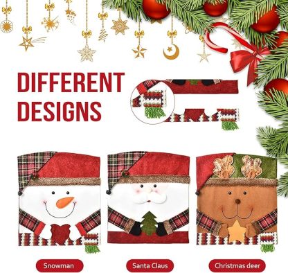 🎉☃️CUTE DESIGN: 3 different styles of Christmas chair covers. The classic Christmas colors, the red chair cover with the Santa Claus snowman and reindeer pattern adds charm to the Christmas decorations and makes the dining table look more sacred.